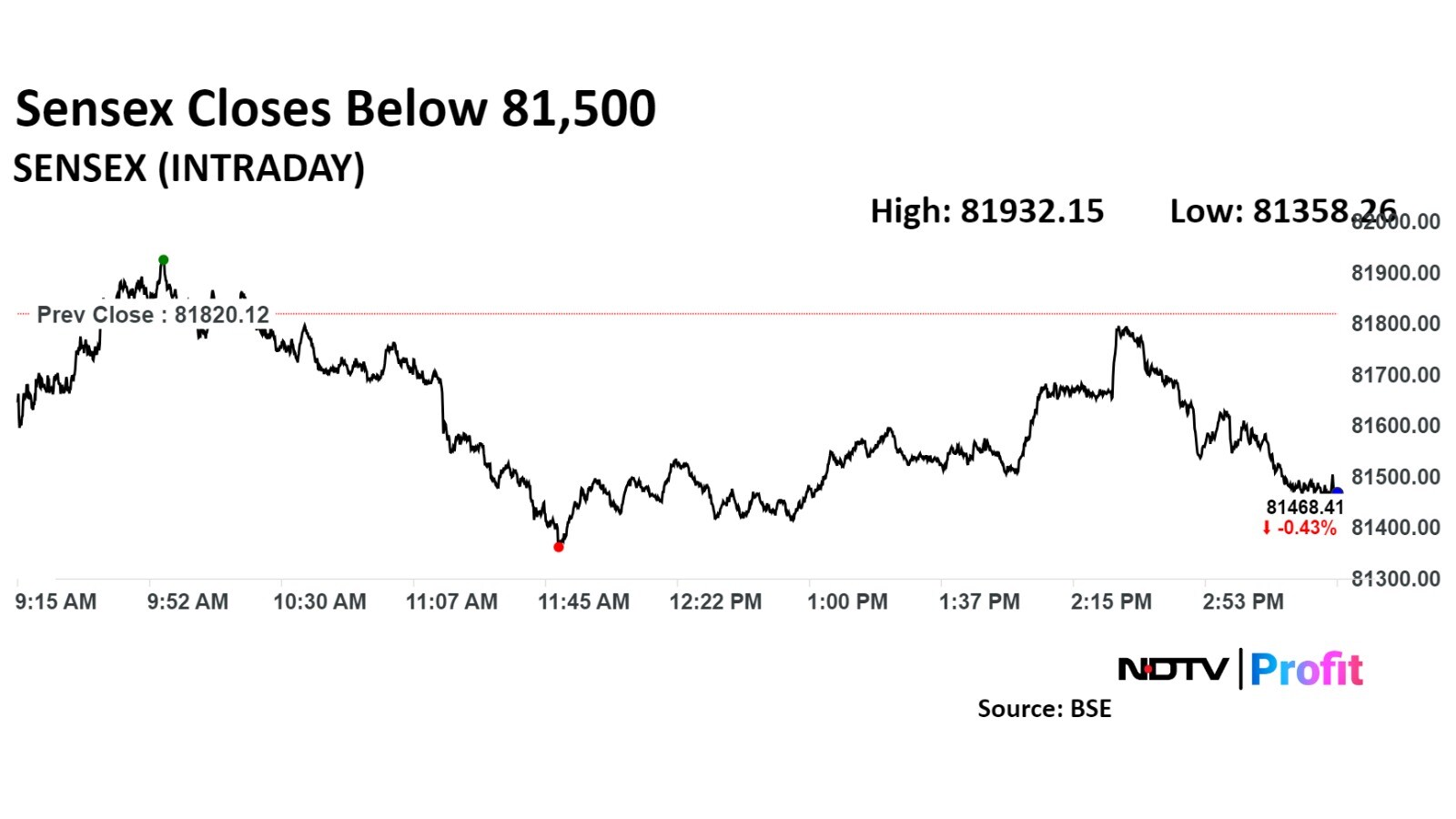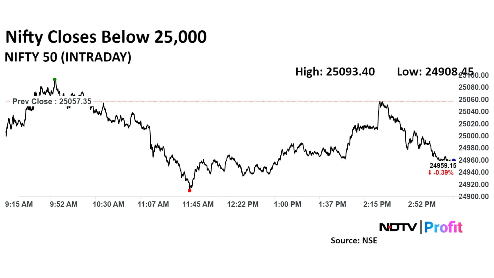 During the session, the Nifty 50 declined as much as 0.59% to 24,908.45, while the Sensex declined 0.56% to 81,358.26.
