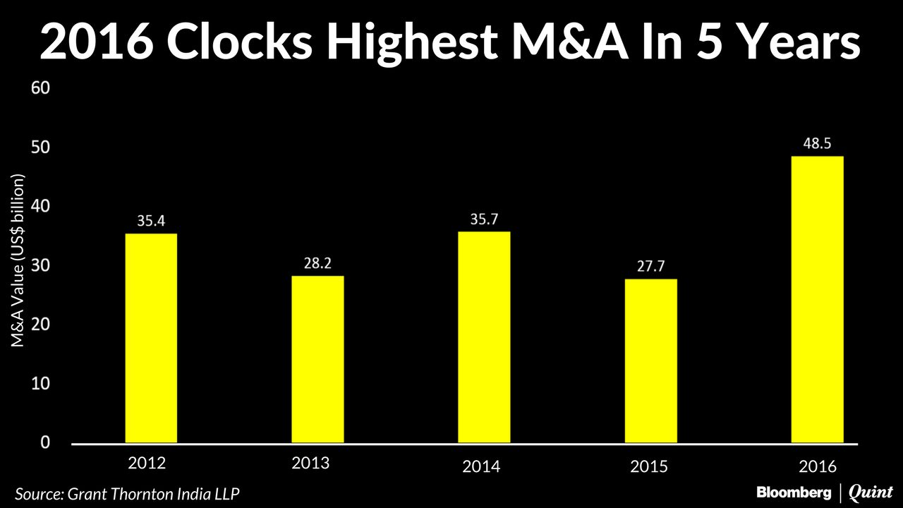 The resurgence of big-ticket corporate deals led to a record 40 percent jump in the value of M&A deals in 2016 with $62.5 billion worth of transactions, data from Grant Thornton showed.