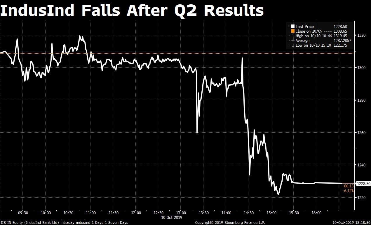 On Thursday, IndusInd Bank shares fell 6.15 percent to Rs 1,228.95 apiece while the benchmark Sensex lost 0.78 percent to end the day at 37,880.40 points.