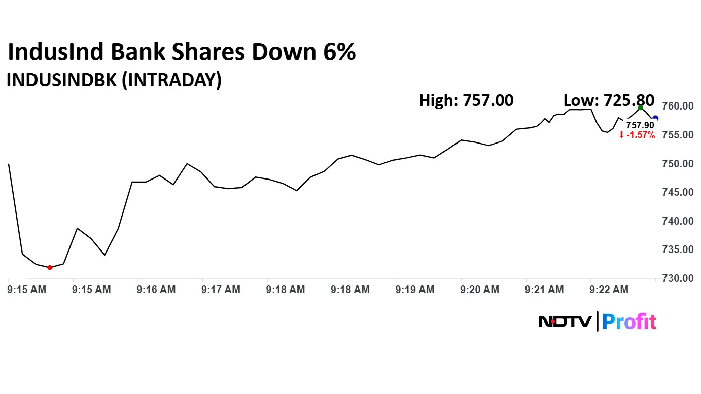 Share price of IndusInd Bank Ltd. recovered after slipping nearly 6% in early trade on Thursday, after the lender posted a consolidated net loss of Rs 2,329 crore for the final quarter of 2025, amid rising discrepancy controversies.
