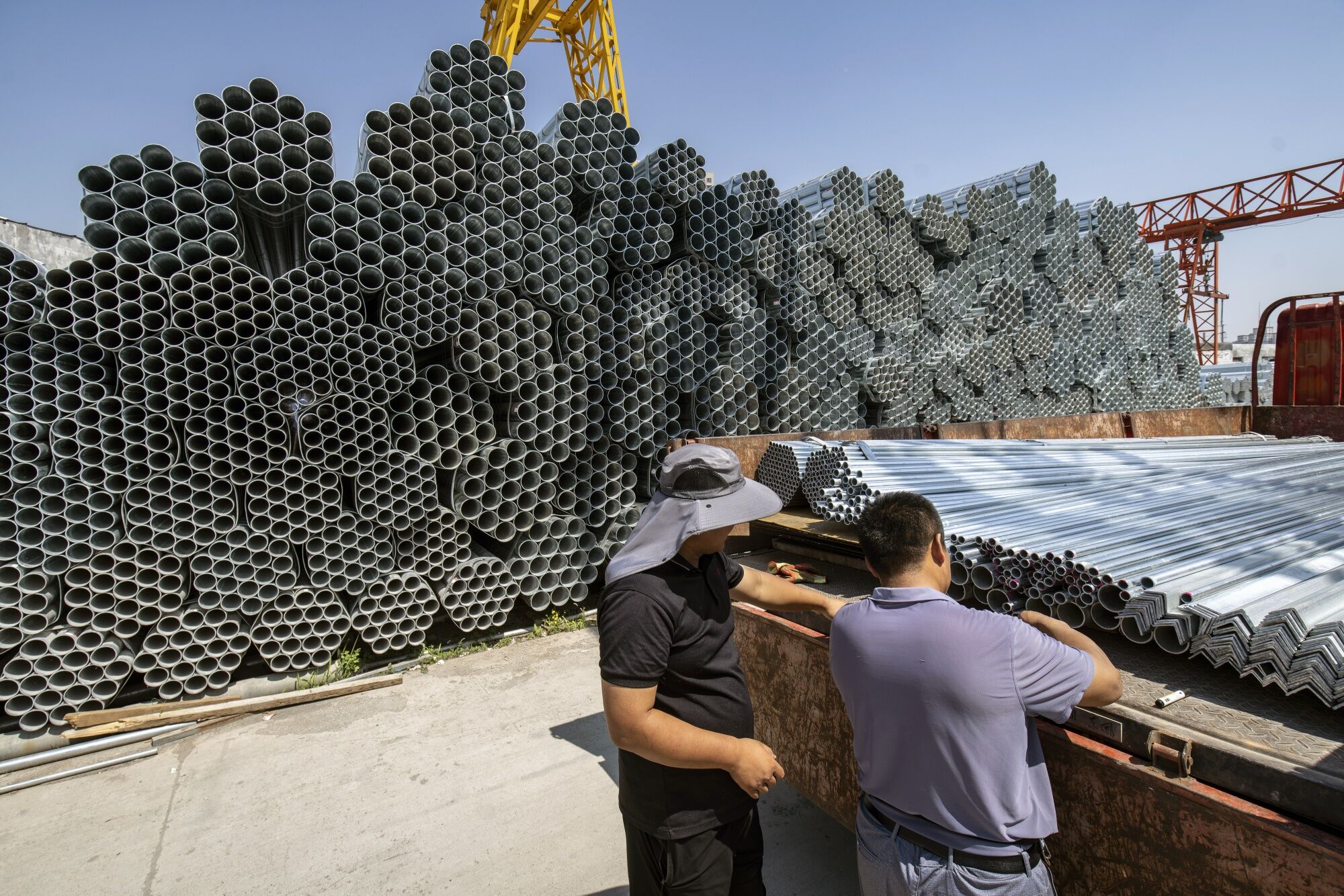 Bundles of steel tubes at a trading market in Jinan, China, on Wednesday, May 8, 2024. China's steel exports have swelled, prompting a backlash overseas as some economies impose higher tariffs. Photographer: Qilai Shen/Bloomberg