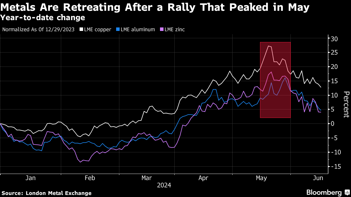 Aluminum dropped as much as 1.2% to hit a two-month low below $2,500 a ton, after data showed China's production of the metal hit a record last month as smelters brought back idled capacity. Heavy rains have improved hydropower reserves in Yunnan and allowed smelters to recommence operations after drought sapped their electricity supply in recent years.