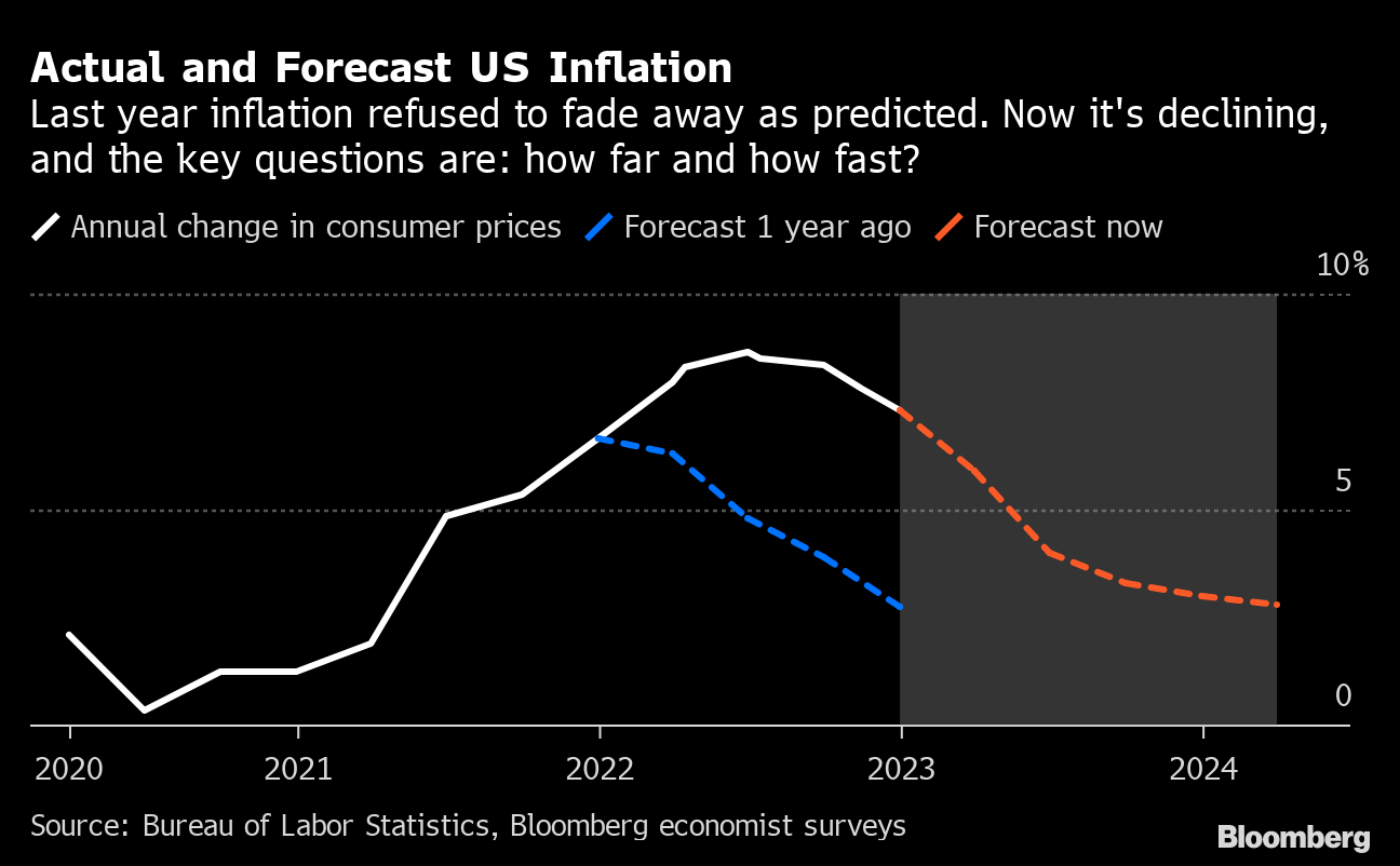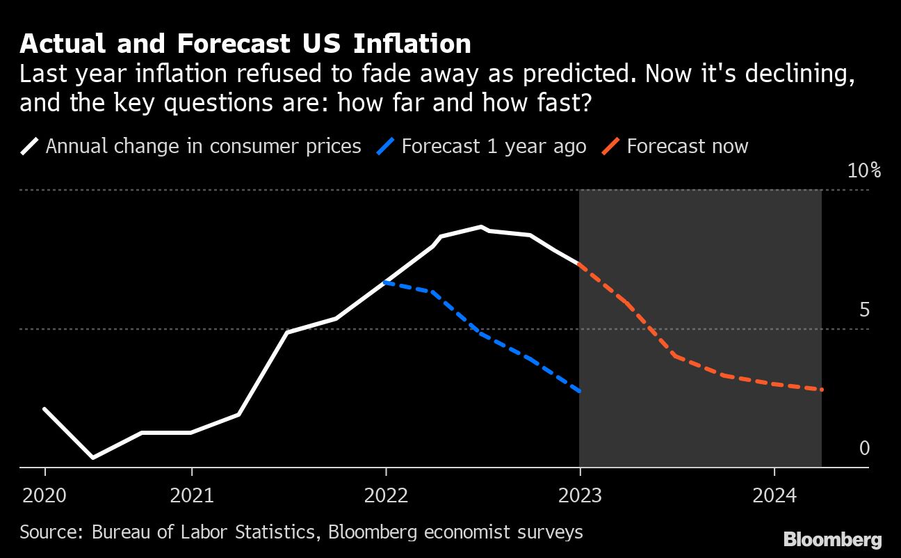 (Bloomberg) -- The question that obsessed financial markets last year was when and where US inflation would peak. The 2023 version will likely be how far, and how fast, it comes down.