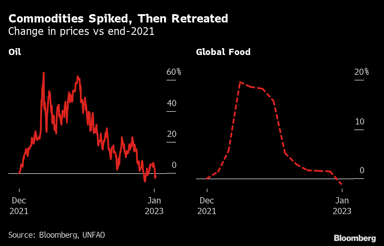 Russia's war against Ukraine, coming on top of the Covid crisis, helped drive a big spike in global energy and food prices. Both have since pulled back from their post-invasion peaks, and the decline will help push inflation down this year.