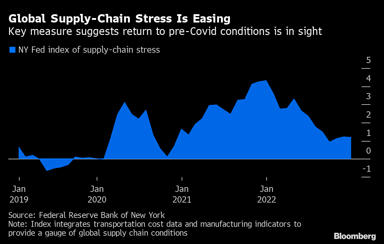 That's why goods prices are poised to lead inflation lower. It's already happening in some categories — like used cars, for example, which soared as the Covid-related supply crunch in semiconductors curtailed new-vehicle manufacturing. But there are still risks to global trade flows, especially from the war in Ukraine and the strained US relationship with China.
