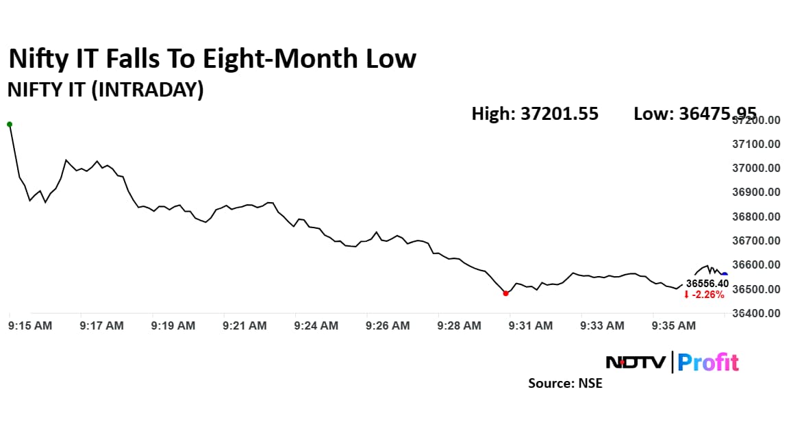 The Nifty IT fell over 4% to hit a nine-month low, extending its decline for the fourth straight session.