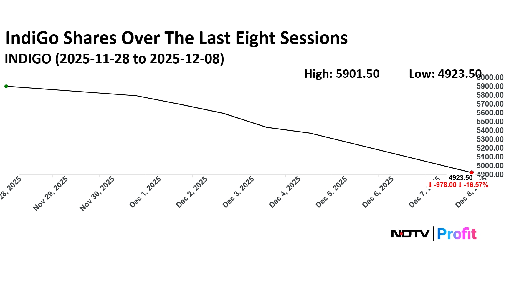 IndiGo, which is part of the Nifty 50, has seen its stock plummet nearly 17% in the last eight trading sessions. The airline had become part of the Nifty 50 after replacing IndusInd Bank in late September this year.