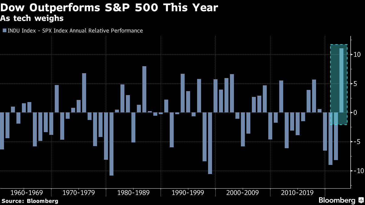 Southwest Airlines Co. led declines in airline stocks after canceling flights, hobbled by a massive winter storm that battered the US. Meanwhile, the blue-chip Dow Jones Industrial Average outperformed, with gains in shares including Verizon Communications Inc. and Caterpillar Inc.