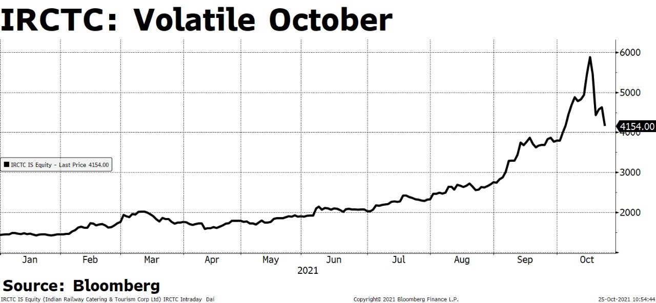 On Oct. 19, it had gained more than 8.8% to a record high of Rs 6,396.3 apiece. That propelled the company's market value to Rs 1 lakh crore, albeit briefly. The scrip then dropped sharply and ended in losses. Over the next trading session, it had lost 30% from its all-time high.