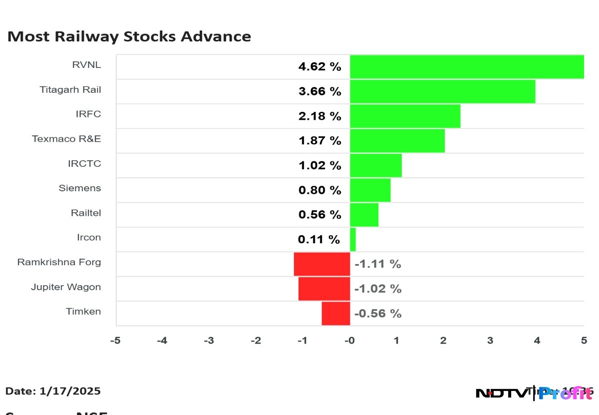 The broader rally on Friday is led by RVNL that rose as much as 11% on Thursday and over 6% on Friday as it secured two multi-crore order from BSNL on Jan. 15 and Jan. 16, the orders cumulatively are worth over Rs 13,235 crore.