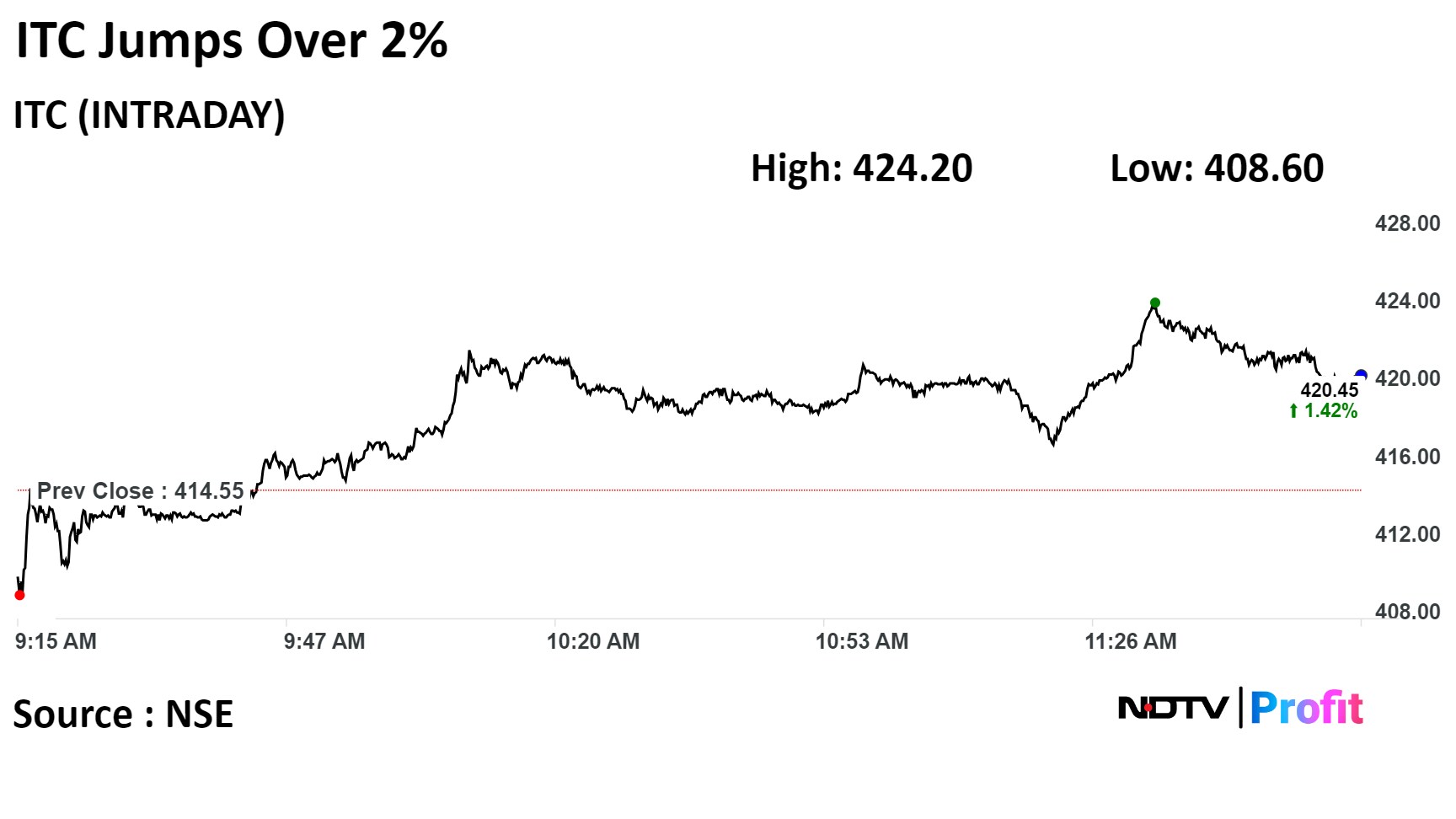 The scrip rose as much as 2.33% to Rs 424.20 apiece. It pared gains to trade 1.25% higher at Rs 145.90 apiece, as of 10:54 a.m. This compares to a 0.08% advance in the NSE Nifty 50 Index.