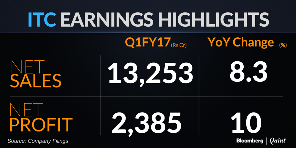 Sales of the FMCG segment, excluding cigarettes, grew 9.5 percent to Rs 2,385 crore in the first quarter from Rs 2,177 crore in the corresponding quarter last year. The EBIT margin for the segment stood at a negative 0.2 percent.