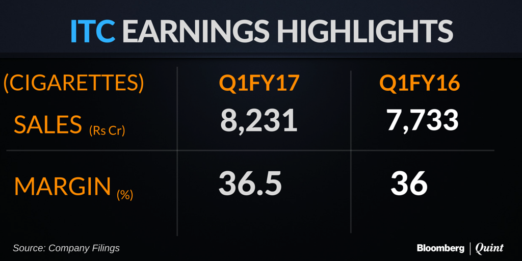 Cigarette segment sales increased to Rs 8,231 crore this quarter from Rs 7,733 crore in the corresponding quarter last year. Earnings before interest and tax, for the segment, increased to Rs 3,005 crore from Rs 2,781 crore on a year-on-year basis.