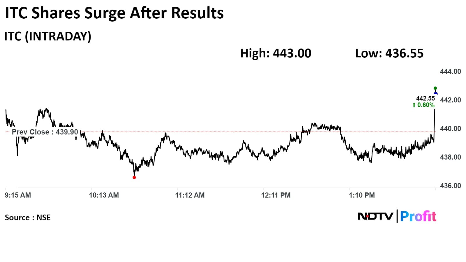 ITC shares rose as much as 0.94% to Rs 444.05 apiece after the results were announced, the highest level since May 8. It pared gains to trade 0.66% higher at Rs 442.60 apiece, as of 2:02 p.m. This compares to a 1.33% advance in the NSE Nifty 50 index.