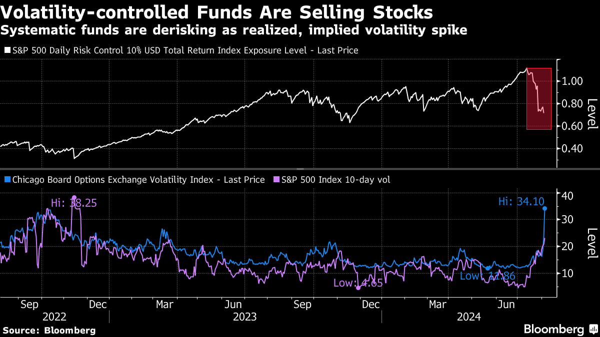 Systematic funds have offloaded more than $130 billion of global stock bets in recent weeks. Now these rules-based players threaten to take their selling to a whole new level as volatility spikes.