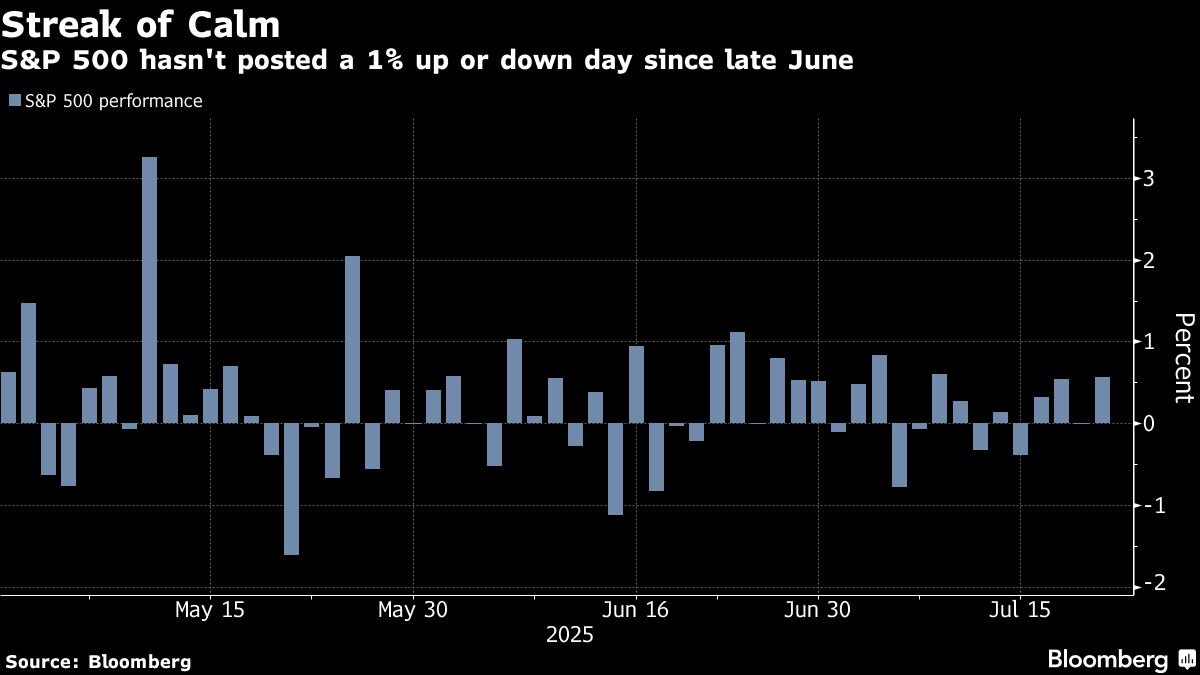 Mark Hackett at Nationwide noted we haven't seen a 1% move in nearly a month, and volatility gauges remain “suspiciously quiet.”