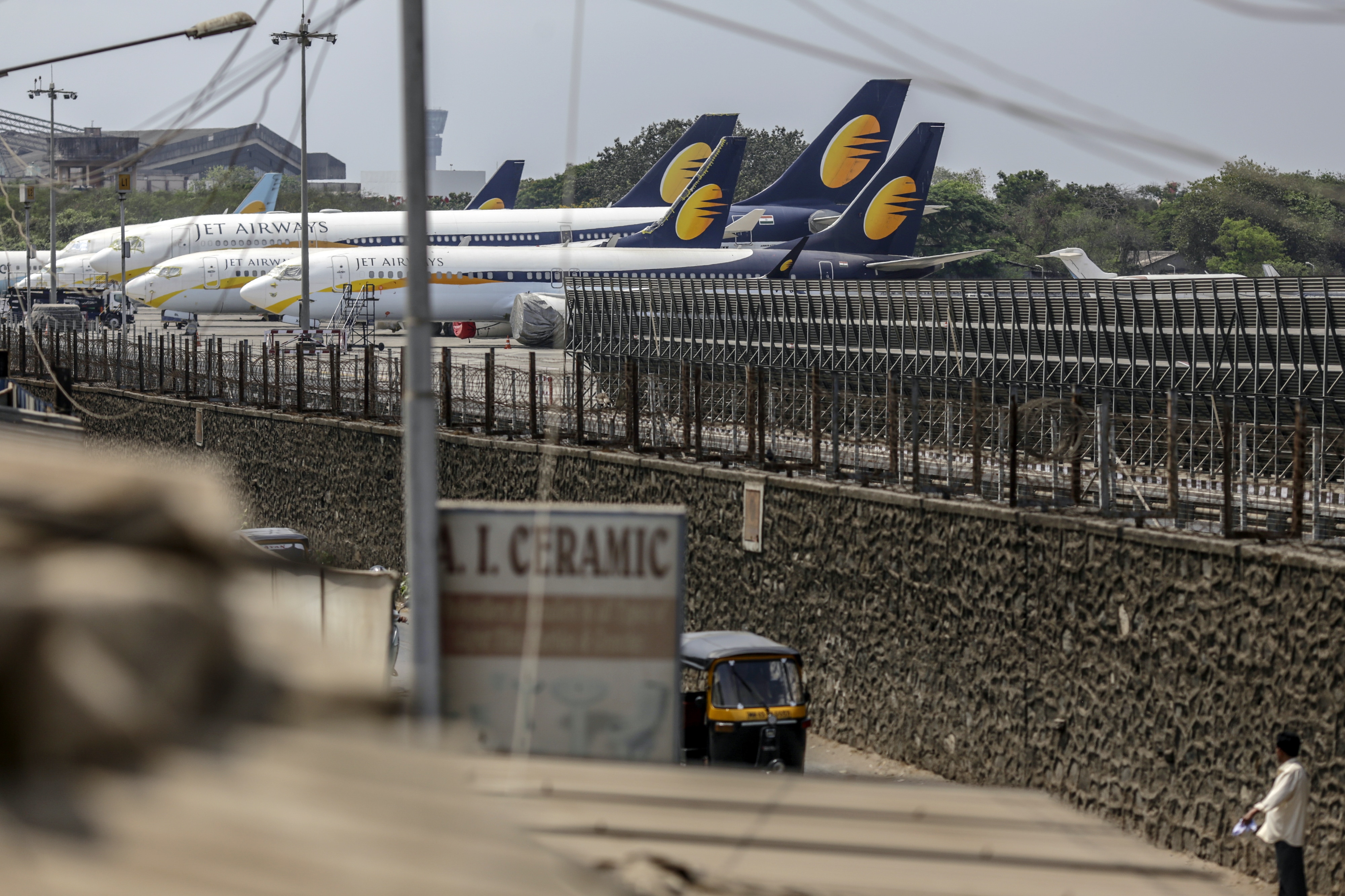 Jet Airways India Ltd. aircraft sit on the tarmac at Chhatrapati Shivaji Maharaj International Airport in Mumbai, India (Photographer: Dhiraj Singh/Bloomberg)