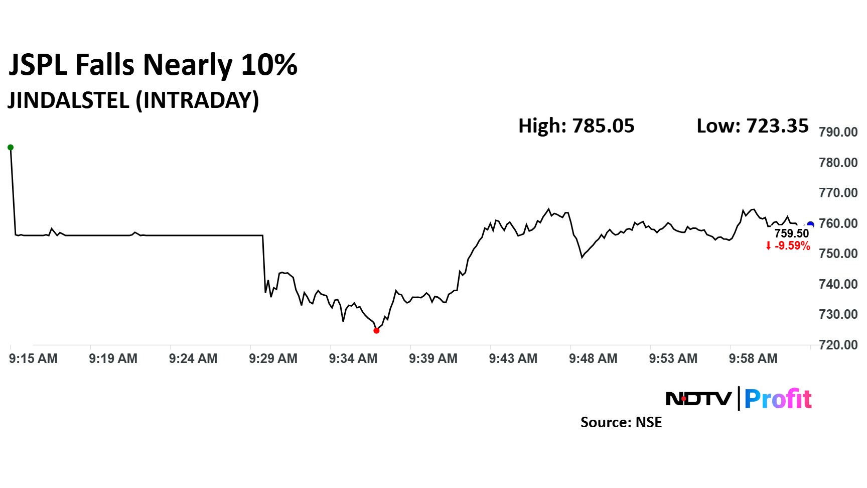 The scrip fell as much as 13.9% to Rs 723.35 apiece, the lowest level since Feb. 14, 2024. It pared losses to trade 10.05% lower at Rs 753 apiece, as of 10:14 a.m. This compares to a 0.3% advance in the NSE Nifty 50.