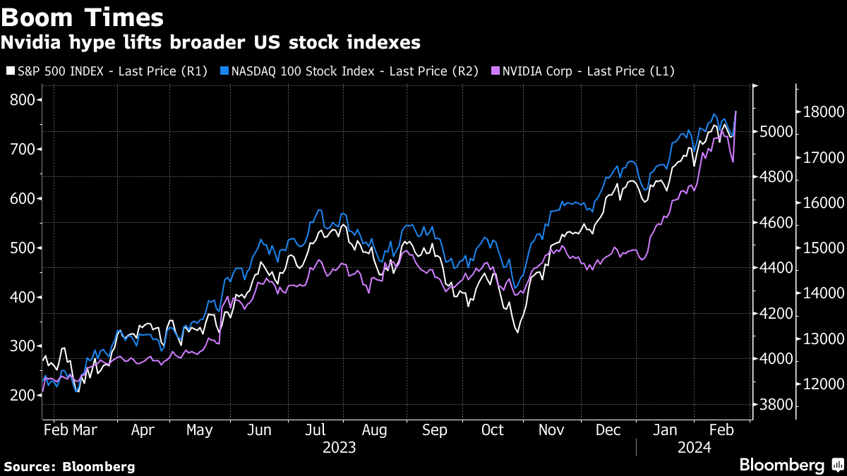 That's exactly what happened, with a fresh-bout of excitement about the impacts of artificial-intelligence technology sending the S&P 500 Index up more than 2% in its best day since November. The technology-heavy Nasdaq 100 Stock Index climbed over 3%.
