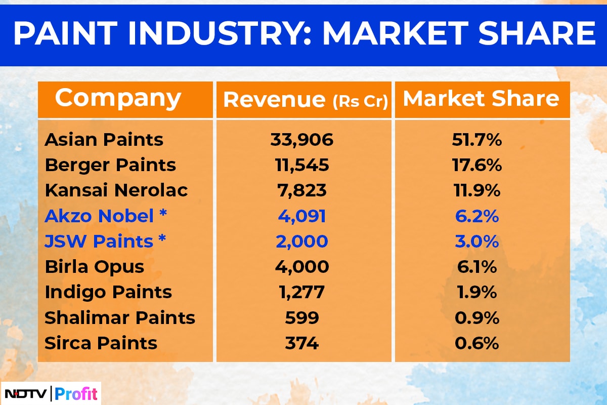 After combining Akzo Nobel's market share of 6.2%, JSW's total market share stands at 9.2%.