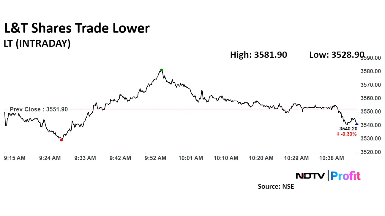 L&T's share price was trading 0.28% lower at Rs 3,542 apiece, compared to a 0.13% advance in the benchmark Nifty 50 as of 10:46 a.m.