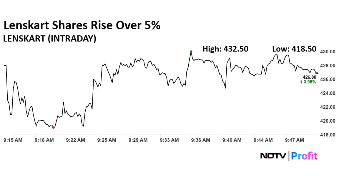The shares of recently listed Lenskart Solutions Ltd. rose over 5% on Monday after its net profit for the second quarter of this financial year rose 19.6% year-on-year.