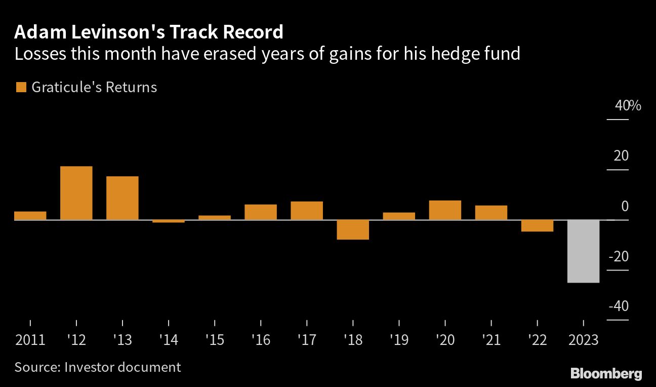 Levinson's Graticule Asia macro hedge fund has plunged more than 25% this year, mostly during the days after the collapse of Silicon Valley Bank, according to people with knowledge of the matter. His bets tied to front-end rates imploded and erased years of gains, the people said asking not to be identified because the details are private.