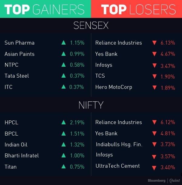 Shares of the Mukesh Ambani-led oil-to-telecom conglomerate fell as much as 7 percent, the most since Oct. 5, to Rs 1,070.25 despite meeting Bloomberg consensus estimates in July-September quarter.