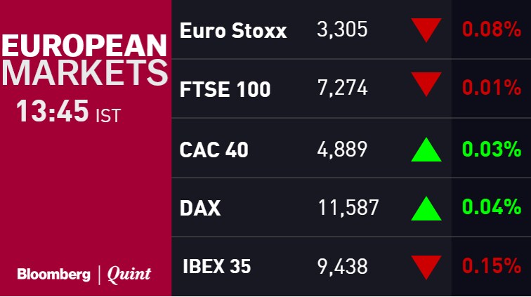 Electronic ticker boards indicate the latest stock figures inside the atrium at the National Stock Exchange (NSE) in Mumbai, India (Photographer: Dhiraj Singh/Bloomberg)
