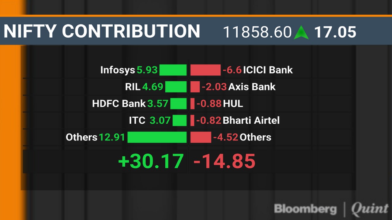 On the flipside, Larsen & Toubro Ltd., Axis Bank Ltd. and State Bank of India were top gainers.