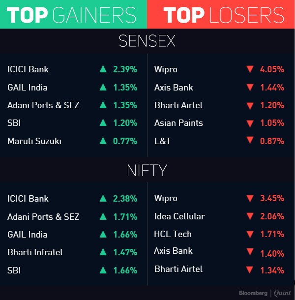 Wipro Ltd. was the top loser on the Sensex with a 3 percent decline after the nation’s third-biggest software services provider “guided for negative to flat revenues" for the next quarter, brokerage Prabhudas Lilladher Pvt. Ltd. wrote in a report. The company’s second-quarter profit and sales beat estimates.