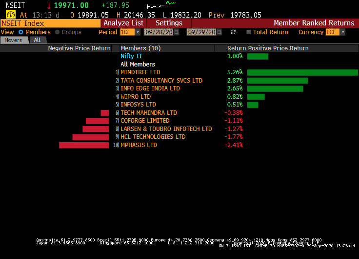 • Nifty I.T. is the other sectoral gainer; up 1%