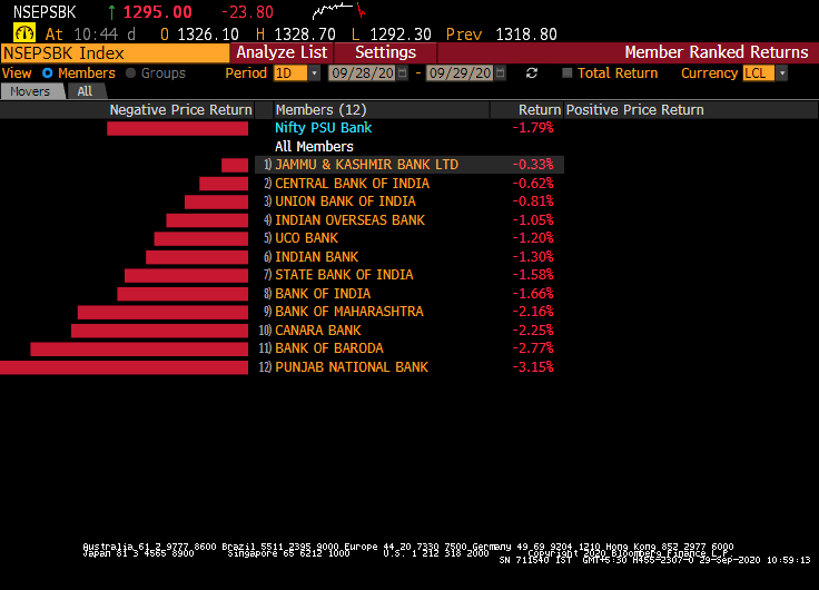 • Nifty PSU Bank index remains the top sectoral laggard; down 2.5%