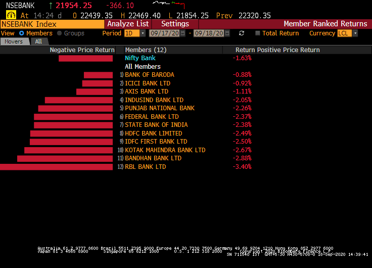 Pressure on banking stocks led to a decline in the PSU Bank index as well, which ended 1.6% lower.
