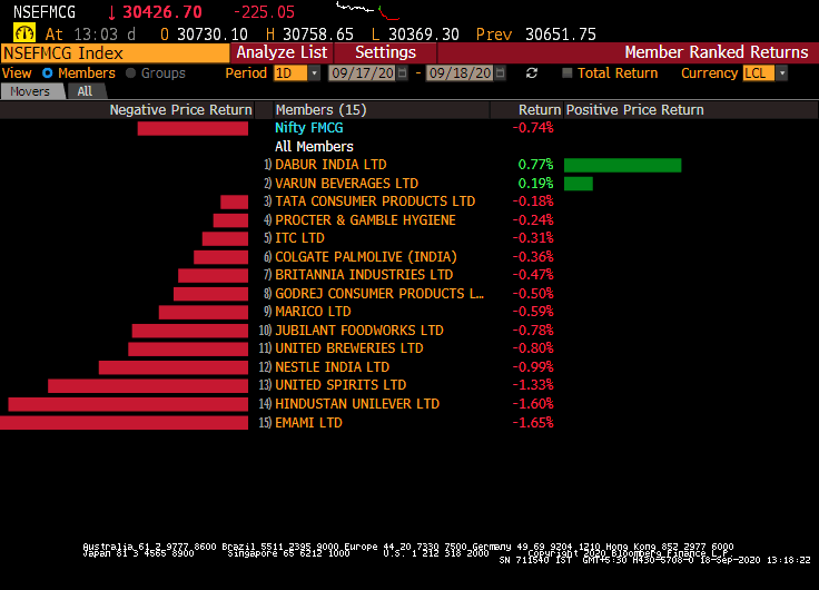 • Nifty FMCG is the only sectoral laggard; down 0.5%