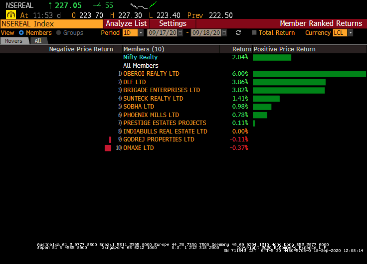 • Nifty Realty is the other major sectoral gainer; up 2.6%