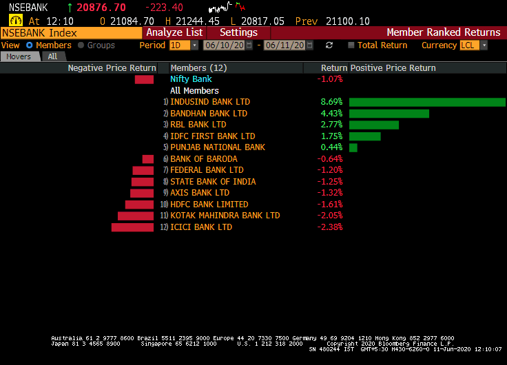 • IndusInd Bank is the top Nifty gainer; up 7.1%