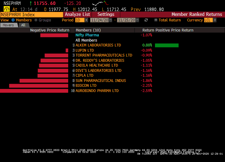 Among the rest of the indices that fell, the Nifty Realty was the top laggard, ending 2.5% lower. The Nifty Pharma index fell 2% while the Nifty I.T. and Nifty Auto indices fell over 1.5% each.