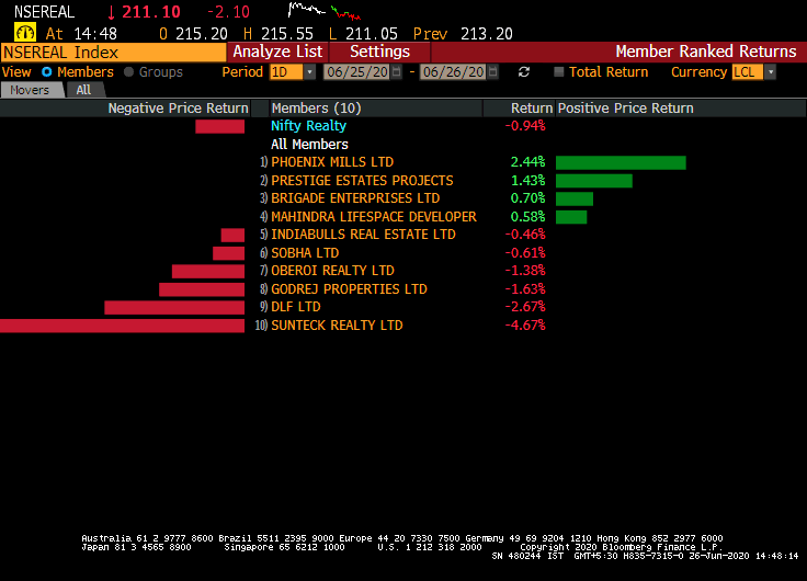 The Nifty FMCG index snapped a six-day gaining streak, ending with losses of 1.1% while the realty index ended lower for the third straight day, down 0.8%.