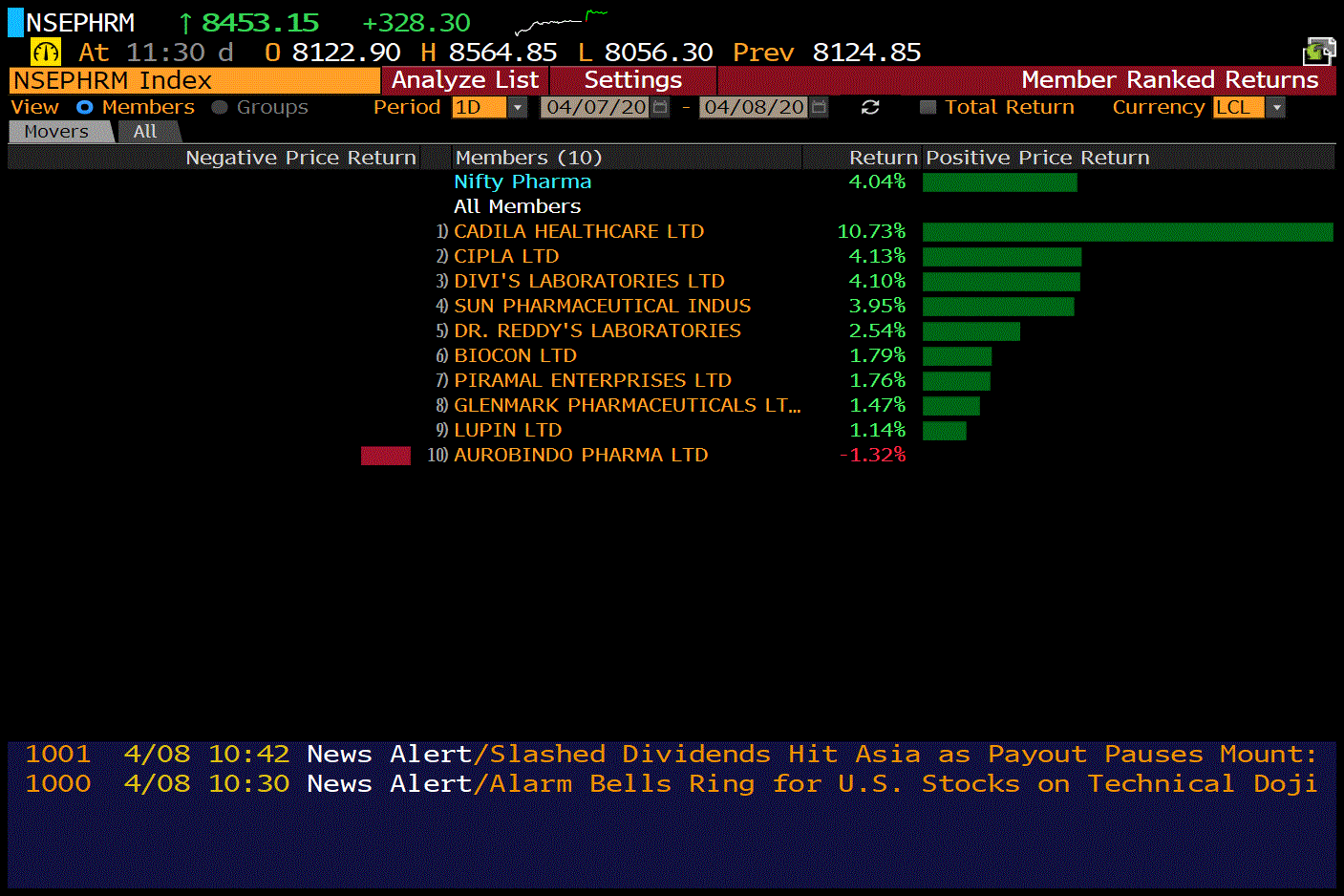 • Nifty Pharma (Up 4 percent) is holding on to gains