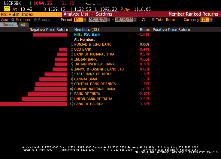 Shares are trading 3.7 percent lower at Rs 329.95, staging a minor recovery from the lowest point of the day.