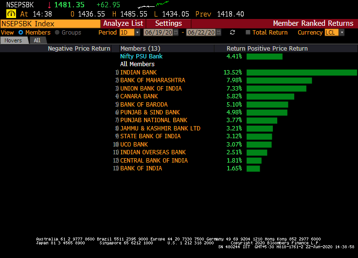 Among the sectoral indices, the PSU Bank index emerged as the top gainer, ending 3.9% higher and gained for the third straight day. The Nifty Media, Nifty Pharma and Nifty Metal index ended with gains between 2-2.5% each.