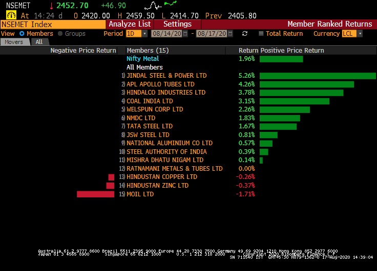 Among other sectoral indices - Auto, Media and Metal stocks outperformed in today's session. The three sectoral indices ended with gains of 2.5% each.