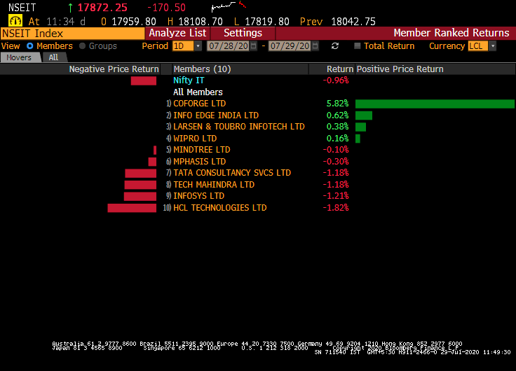 The PSU Bank index was the other sectoral gainer, ending 1.5% higher but off the day's high.