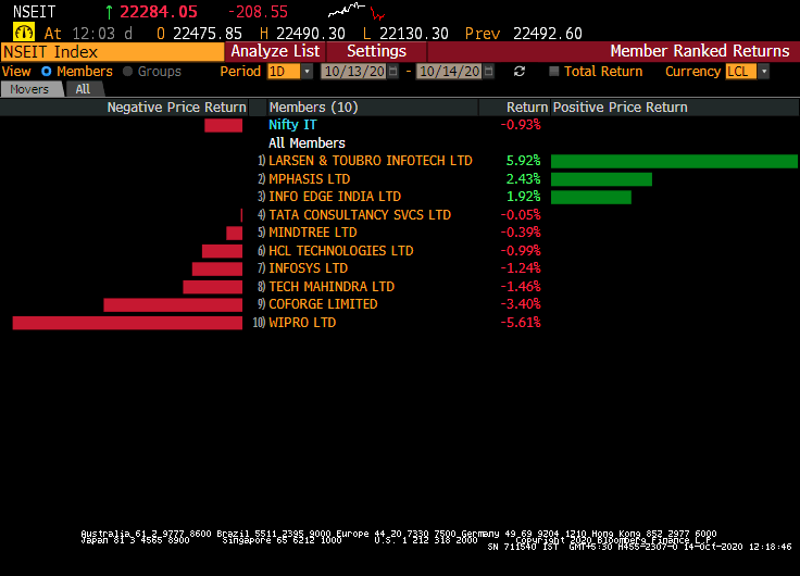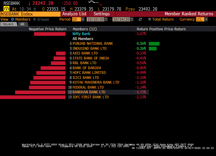 Sectoral indices too have opened flat but with a negative bias. The Nifty Bank index has opened 0.6% lower ahead of the loan moratorium case hearing in the Supreme Court. Most of the other indices have opened with little or no movement.