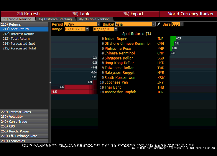 The currency is unchanged on a weekly basis, trading similar to the closing level of July 10.