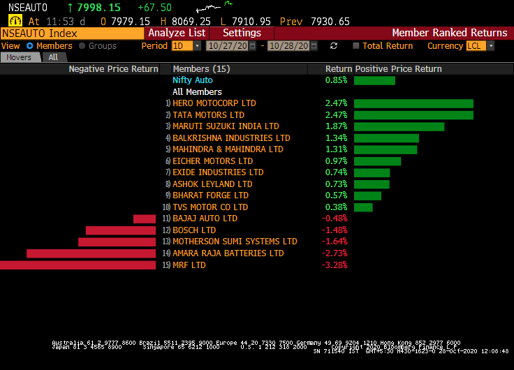 The Nifty Auto index which was the only sectoral gainer through most parts of the trading day, gave up all of its gains to end 0.1% lower.