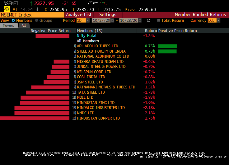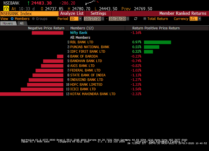 All sectoral indices ended with losses in today's session. Losses were led by the Nifty Bank index, which gave up 540 out of the 700 point gain on Tuesday. The index ended 2.2% lower.