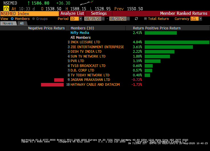 • Nifty Media off day's high but up 2.3%