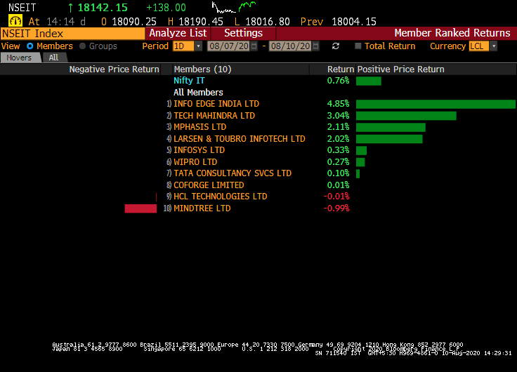 Nifty Realty was the other major sectoral performer, ending with gains of 2.8%. Nifty I.T. (up 1%) and Nifty Metal (Up 0.8%) were the other major sectoral performers.